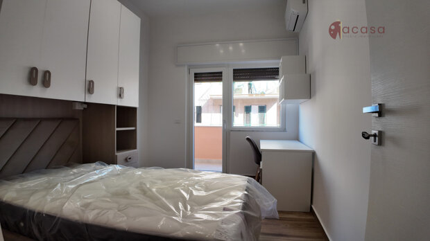L'appartamento è composto da un accogliente ingresso su corridoio, quattro camere spaziose , cucina attrezzata con elettrodomestici nuovi , 2 servizi dal design contemporaneo dotati di box doccia . Ogni camera dispone inoltre di armadiature capienti, scrivania perfetta per lo studio o il lavoro agile e climatizzatore inverter caldo/freddo. 3 Camere hanno canone di locazione di euro 300 e la camera più ampia euro 350.