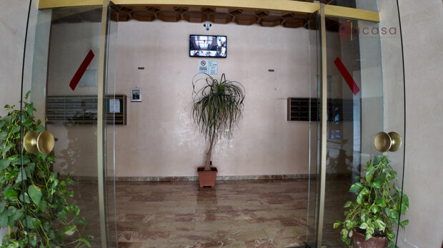 L’edificio si presenta curato anche nelle aree comuni: l’ingresso è elegante con pavimentazione in marmo originale ben tenuta, illuminazione naturale e telecamere per la sicurezza condominiale. La presenza della rampa d’accesso rende lo stabile comodo anche per persone con mobilità ridotta.