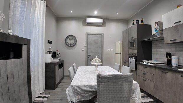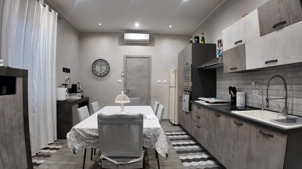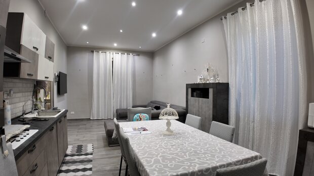 L’immobile si distingue per l’ampiezza degli ambienti e per la distribuzione funzionale degli spazi interni. L’ingresso si apre su un ampio atrio che conduce a un salone di rappresentanza luminoso con affaccio sulla strada principale, ideale per accogliere ospiti o vivere momenti conviviali in famiglia. Il disimpegno, comodo e ben organizzato, accompagna verso la zona giorno dove troviamo una cucina abitabile spaziosa e funzionale. La zona notte comprende due camere da letto di generose dimensioni, ben arieggiate e luminose. Completano la proprietà due servizi, uno dotato di doccia e l’altro di vasca, oltre a un pratico ripostiglio che contribuisce a rendere ancora più funzionale l’abitazione.