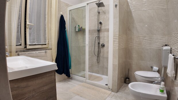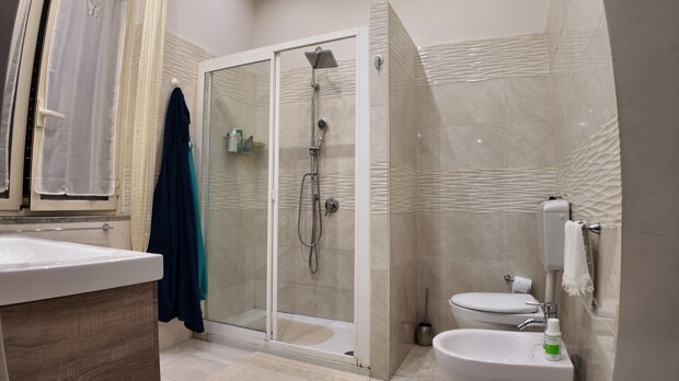 Tutti gli ambienti dell’appartamento hanno accesso a un ampio balcone terrazzato, vivibile e particolarmente piacevole nelle giornate di sole, perfetto per momenti di relax all’aperto.