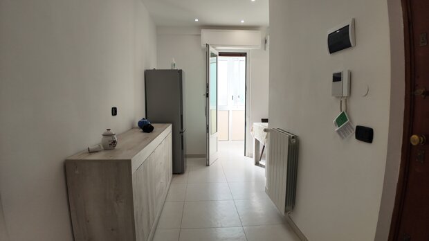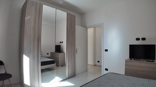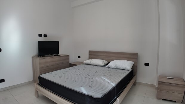 L'appartamento presenta una luminosa esposizione sul prospetto principale che garantisce luce naturale durante tutto il giorno. L'ingresso conduce a una spaziosa zona living con cucina a vista, perfetta per accogliere amici e familiari. La camera da letto offre uno spazio intimo e confortevole, mentre il servizio è dotato di ampia doccia moderna con due soffioni.