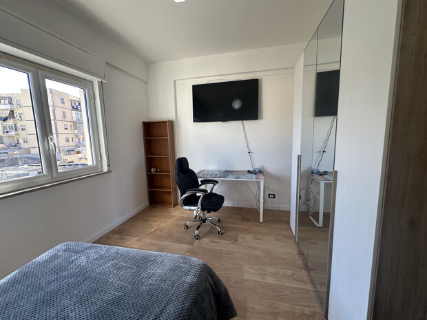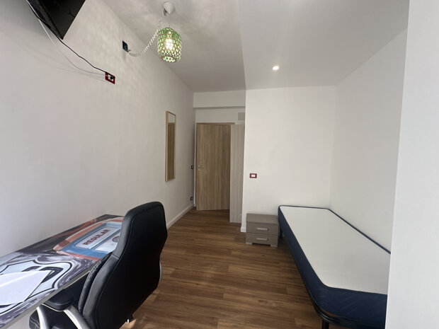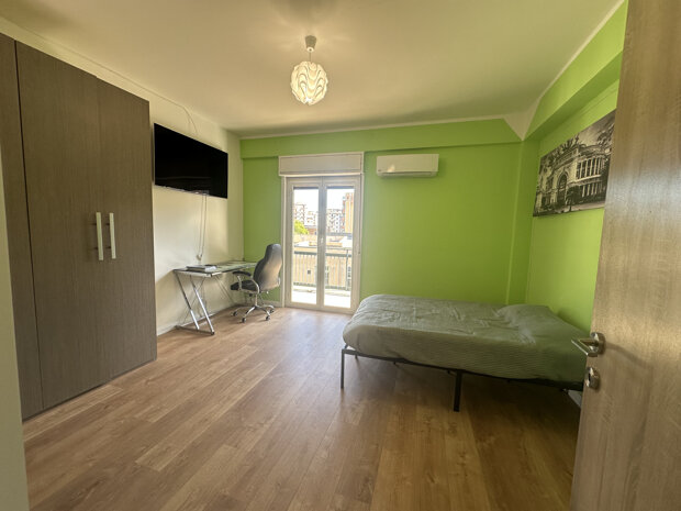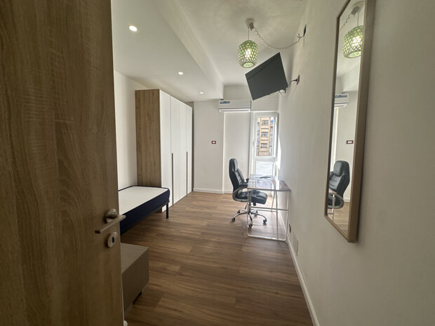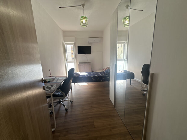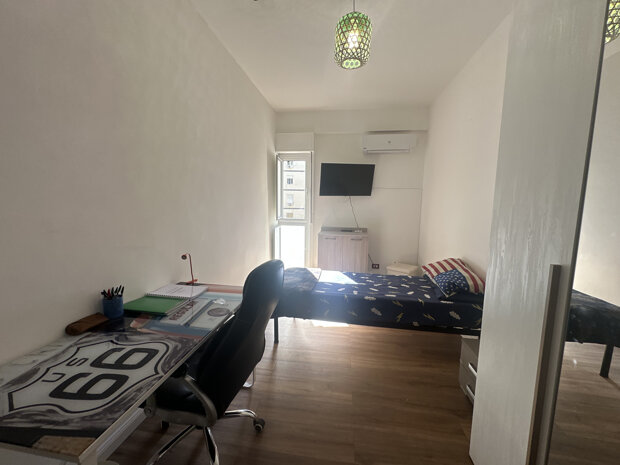 L' appartamento si presenta in ottime condizioni ed è ideale per la vita da studente. È composto da due camere disimpegnate, molto luminose e arredate con gusto, che offrono un ambiente accogliente e funzionale. Ogni camera è dotata di scrivania e armadio spazioso, perfette per lo studio e il relax, tv e condizionatore. Il canone mensile NON include spese condominiali e/o utenze.