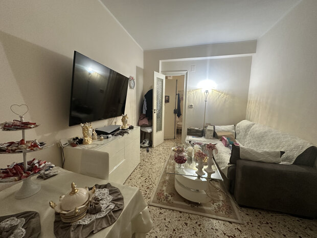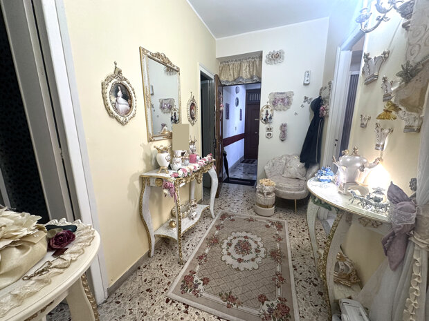 L'immobile si estende su una superficie totale di 78 mq circa ed è composto da 3 vani spaziosi, oltre ad una cucina funzionale e un servizio. Un terrazzino completa la proprietà. La proprietà dispone inoltre di doppio ingresso: uno dal prospetto principale e l'altro dall'ingresso condominiale.