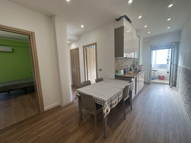 L'appartamento è composto da un ingresso su disimpegno che conduce a due camere spaziose, ideali per famiglie o come stanze per studenti. La cucina abitabile è perfetta per condividere momenti conviviali. Completano la proprietà un servizio funzionale e un pratico ripostiglio.
